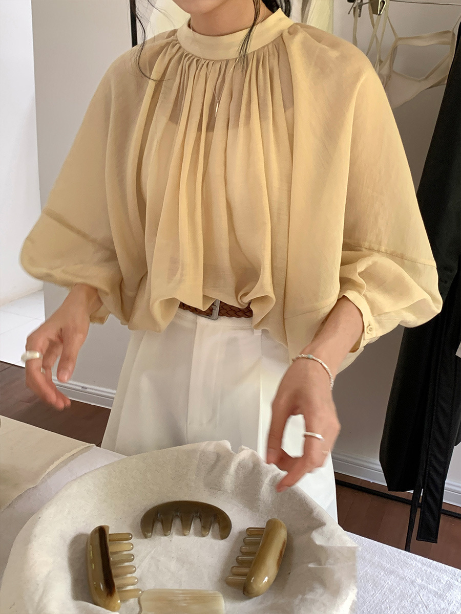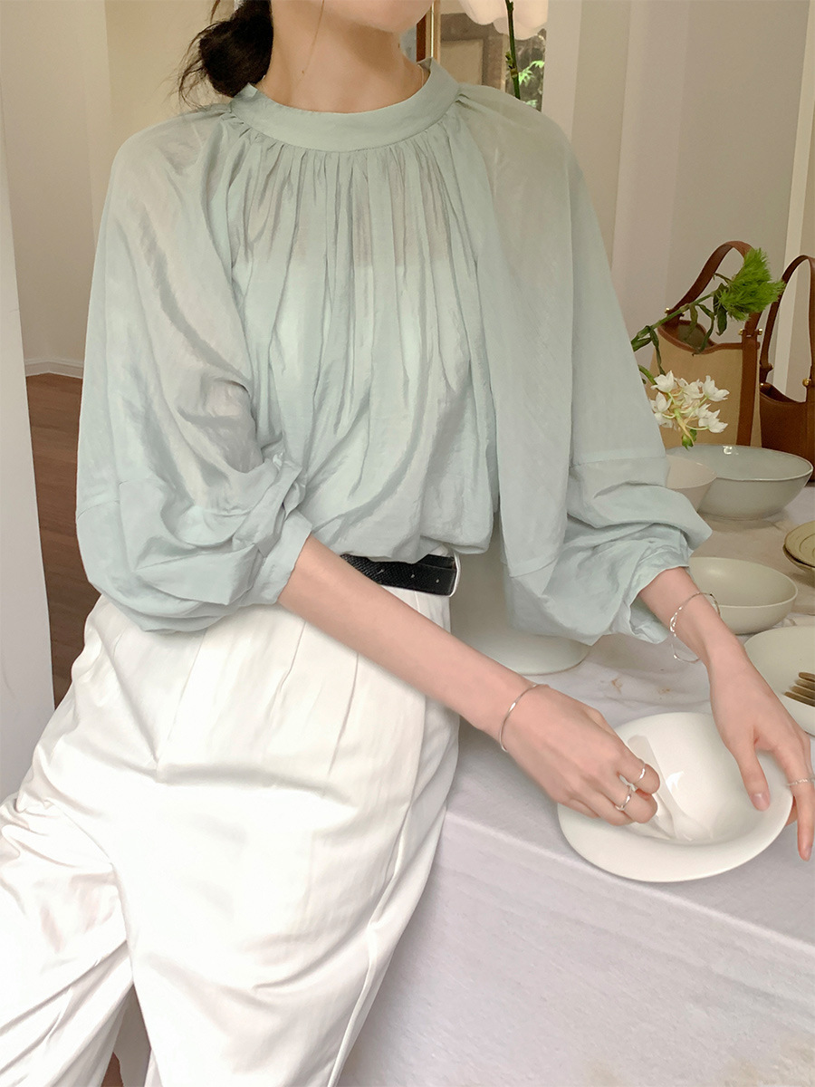 Gentle temperament, lace up lantern sleeves, loose fitting small shirt for women.